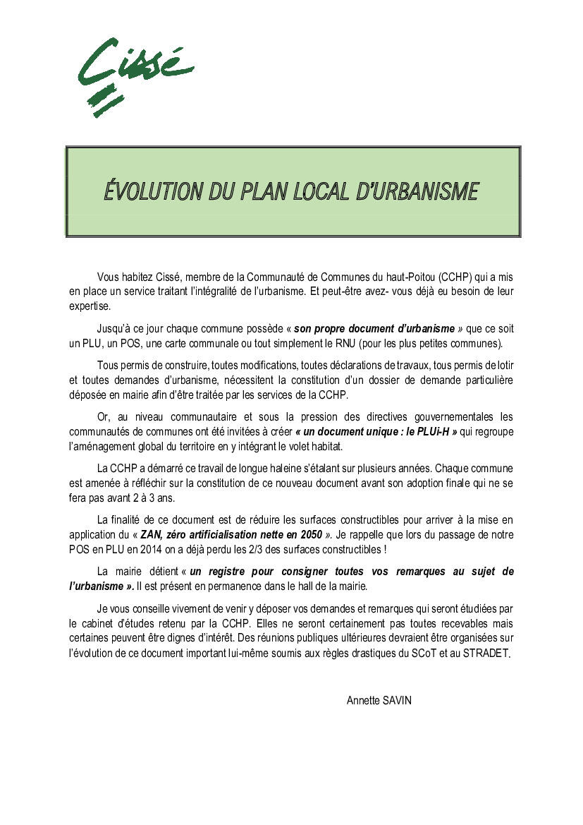 INFORMATION SUR LE PLAN LOCAL D'URBANISME