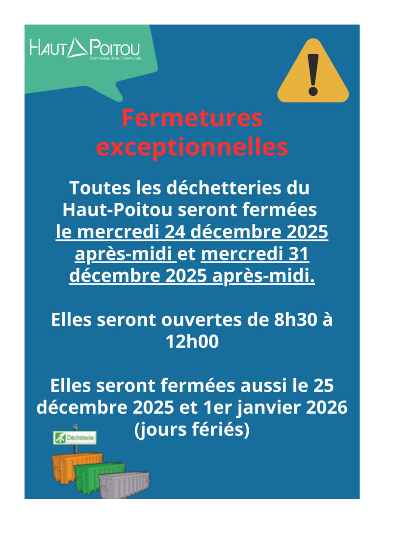 FERMETURES EXCEPTIONNELLES DES DÉCHETTERIES