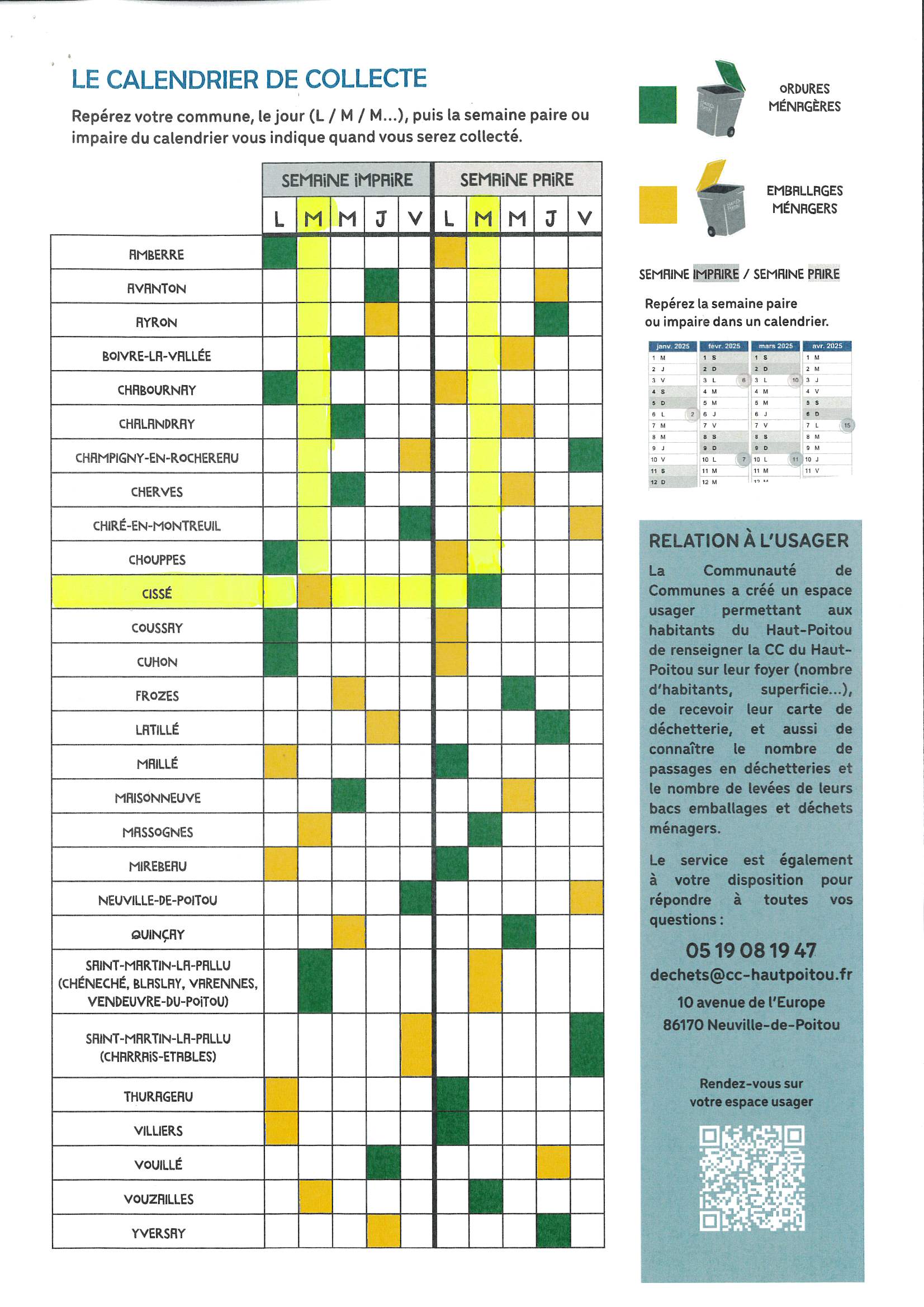 Pour toute question, vous pouvez contacter le 05 19 08 19 47 ou visiter notre site web : calendrier de collecte des déchets