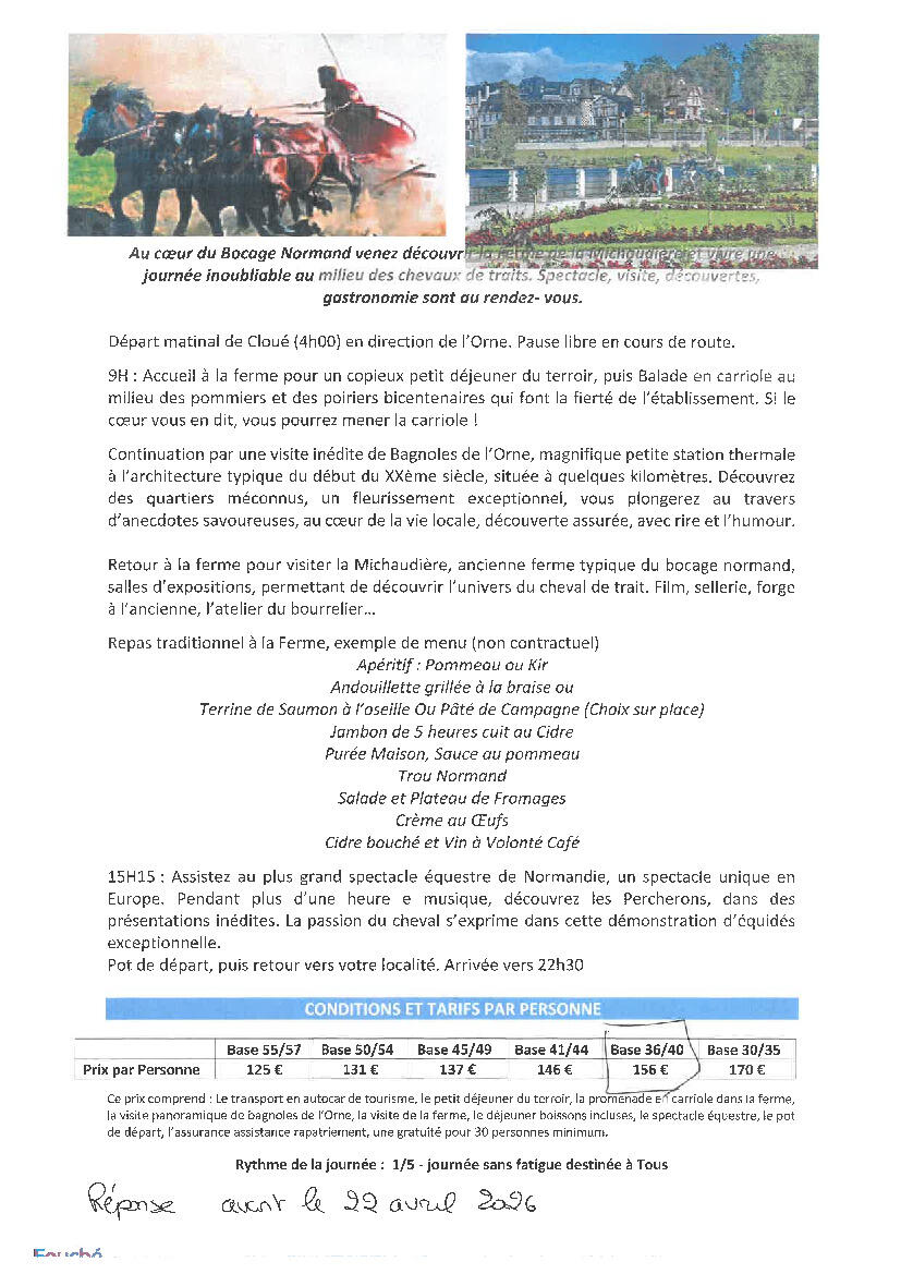 Le Club de l'amitié de Cloué vous propose.....