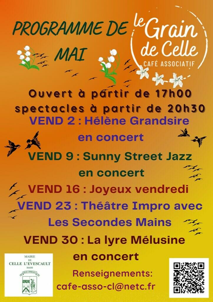 Votre mairie / Actualités / Le Grain de Celle : programme de Mai