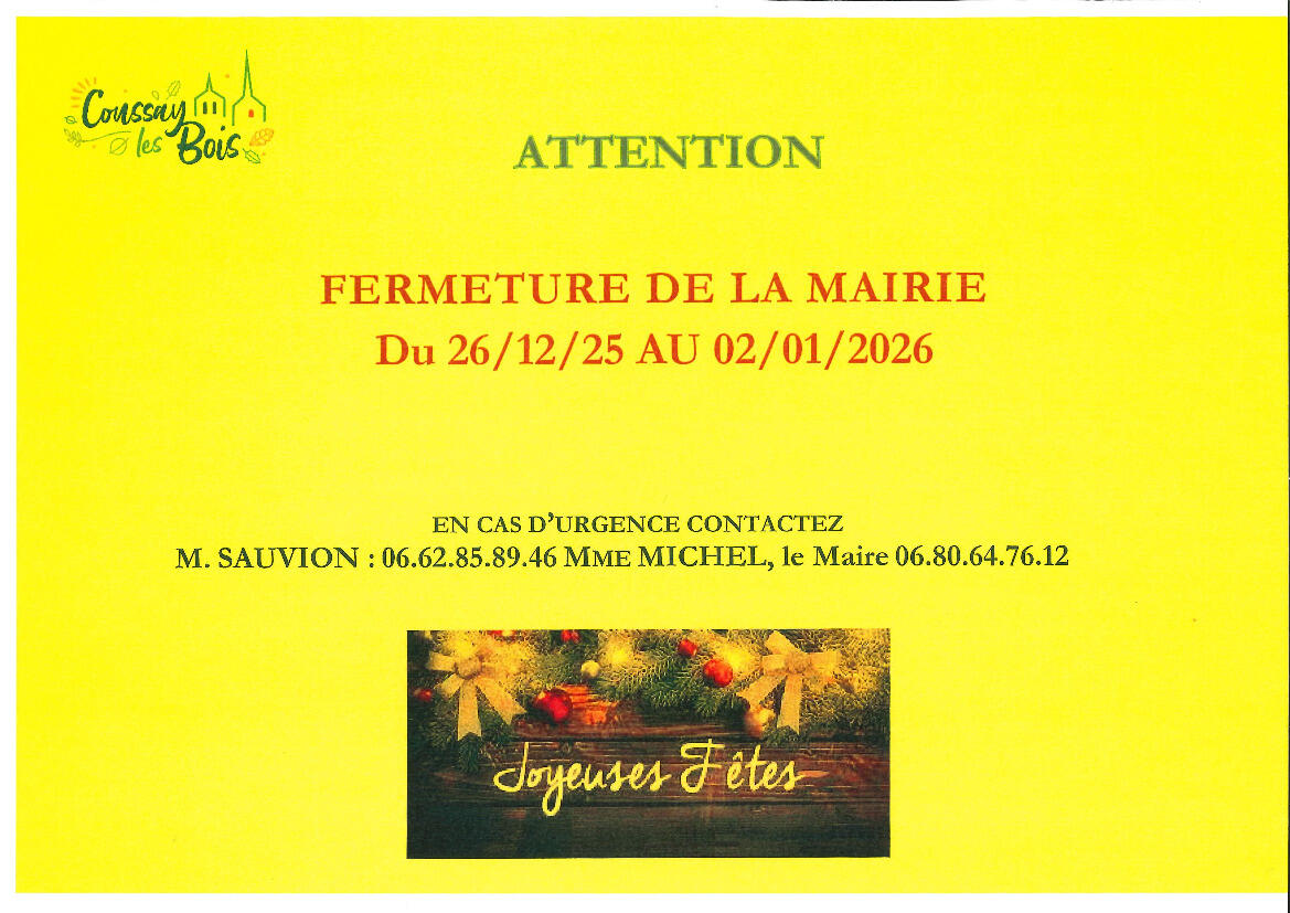 Fermeture de la Mairie et de l'Agence Postale