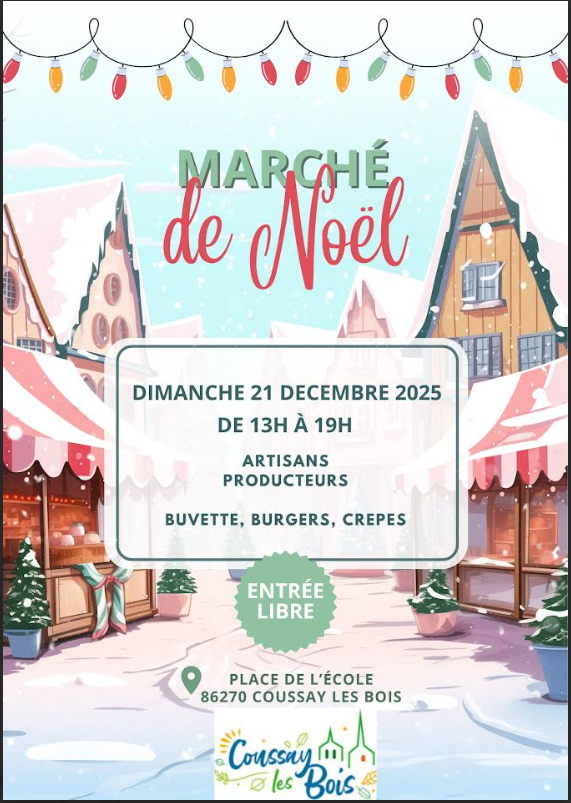 le 1er marché de Noel à Coussay- les- bois sera installé place des écoles de 13h à 19 H