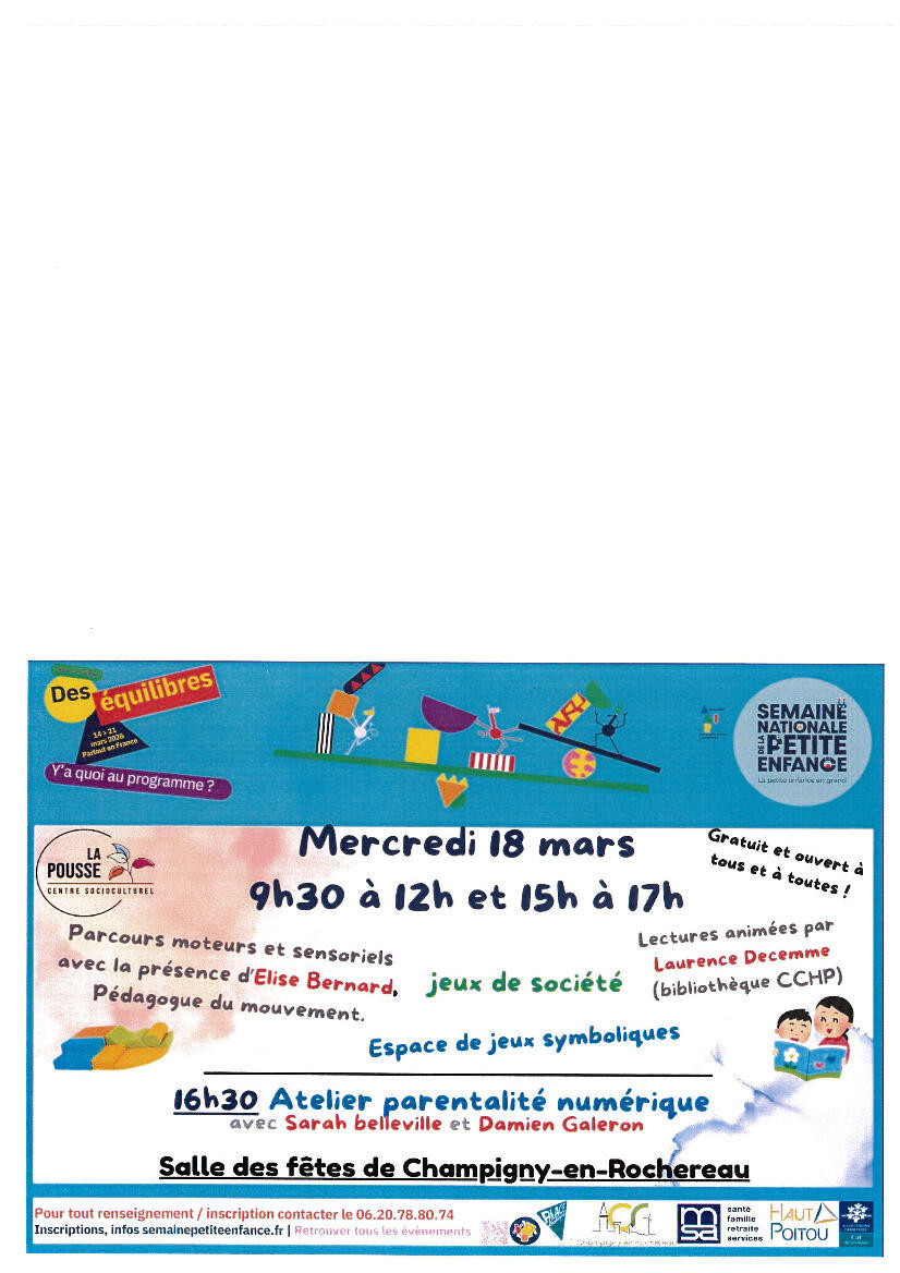 Semaine Nationale de la Petite Enfance CSC LA POUSSE 17/03/2026 SEMAINE NATIONALE DE LA PETITE ENFANCE Source : Mairie de Cuhon