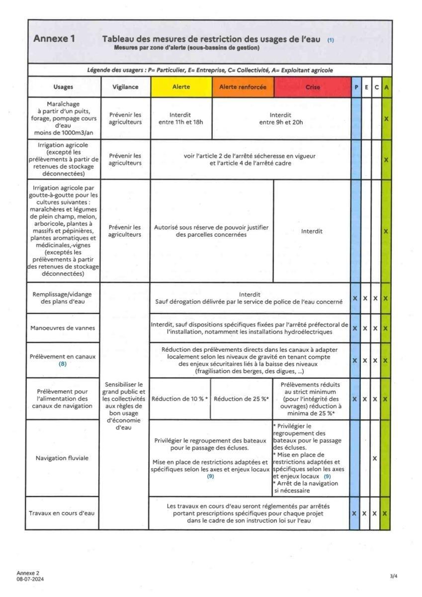 Restrictions en vigueur dès le Lundi 11 août, 8h