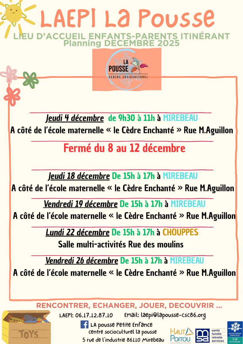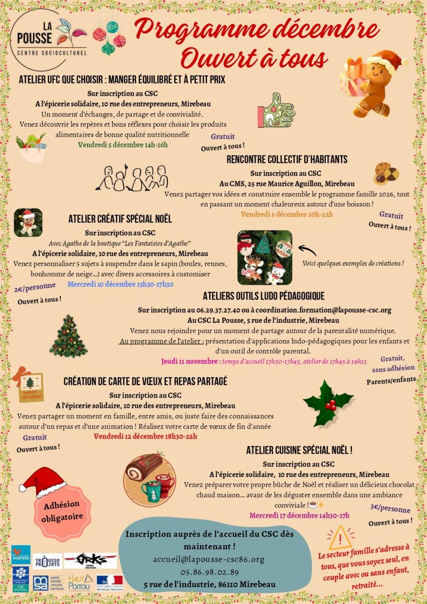 CSC La Pousse - Programme famille décembre 2025