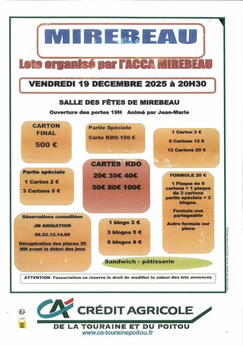 LOTO - ACCA Mirebeau Vendredi 19 décembre 2025