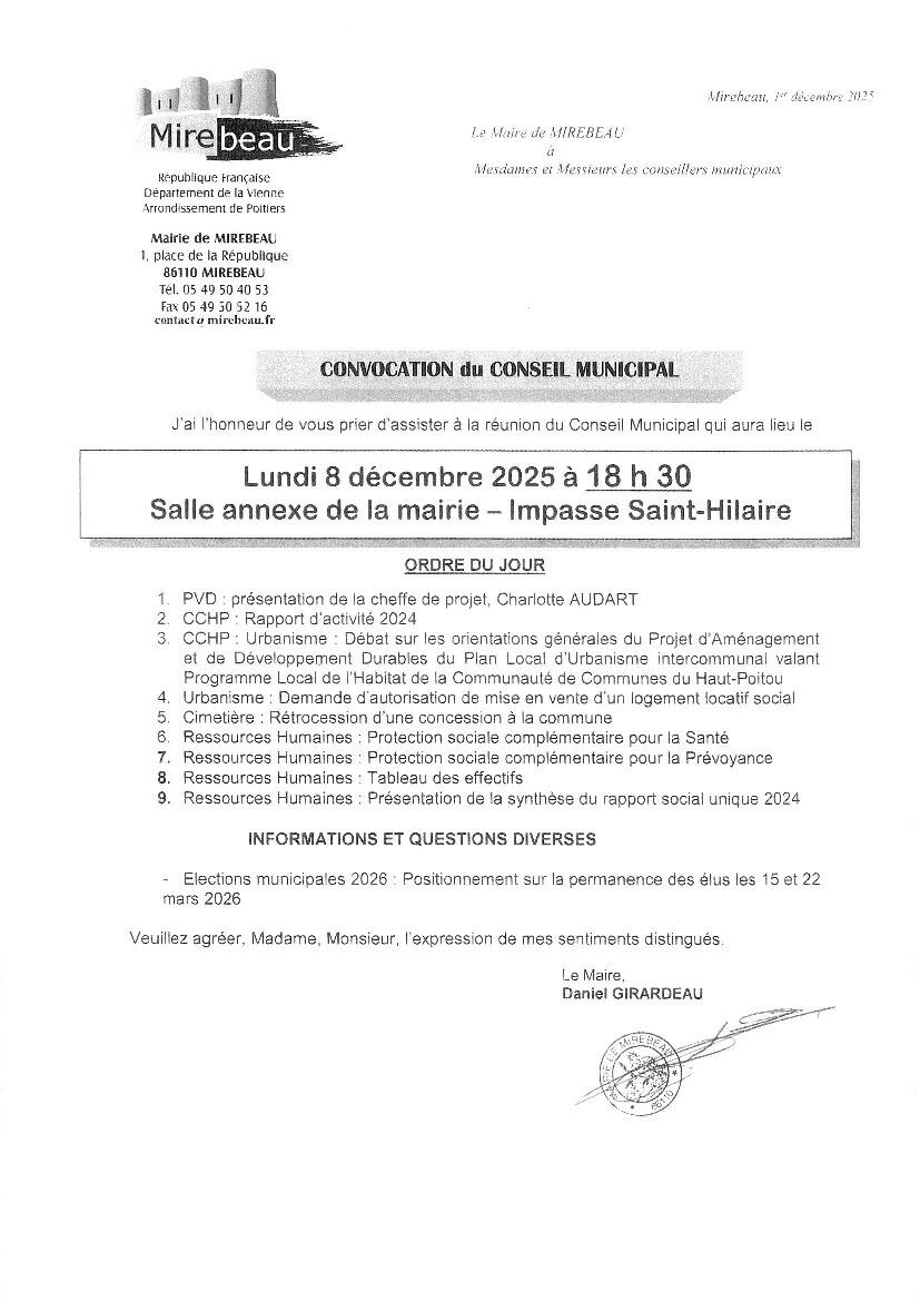 Réunion du Conseil Municipal - Convocation