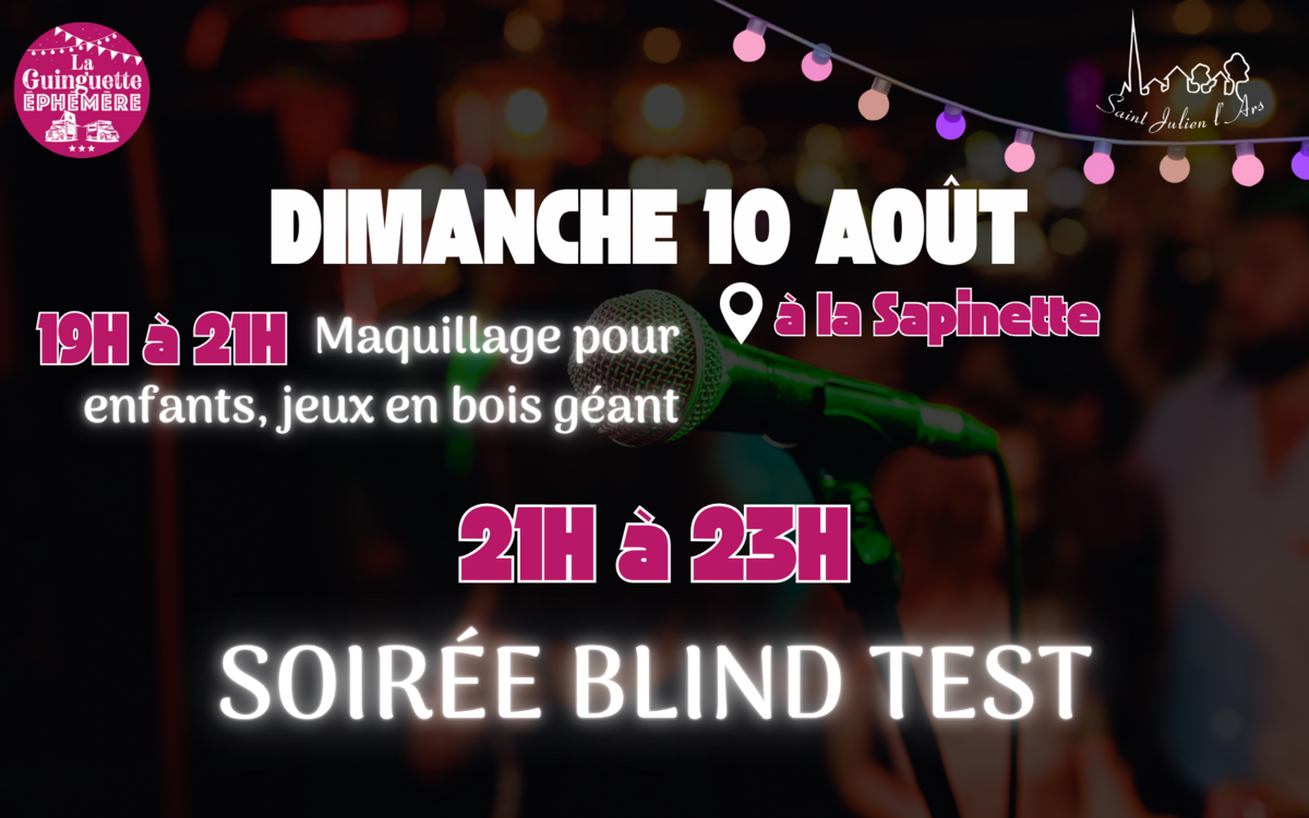 👉 de 21h00 à 23h00 : Soirée Blind Test 🎤