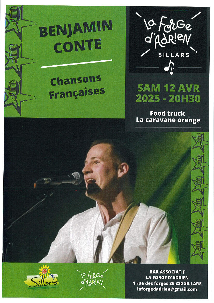 Samedi 12 Avril à 20h30, Concert à La Forge d'Adrien avec Benjamin CONTE et son répertoire de chansons françaises