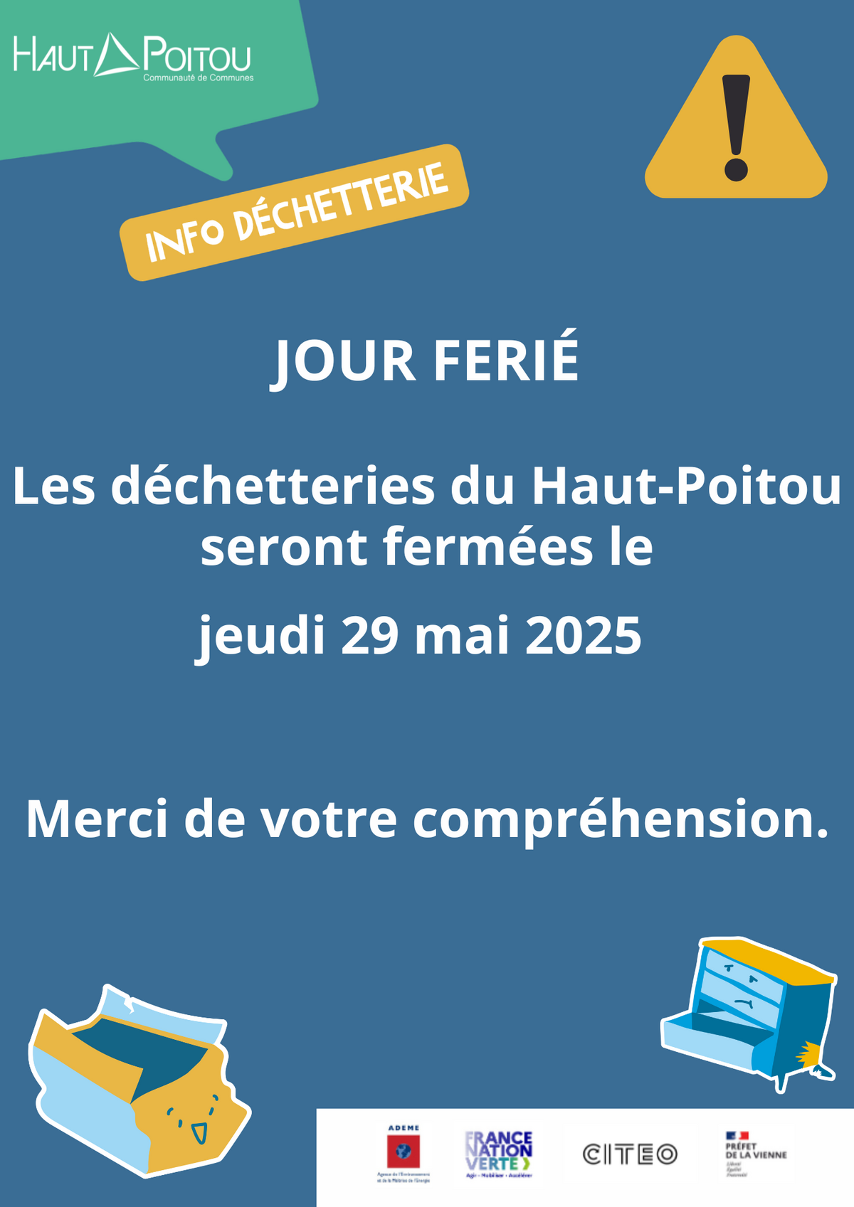 FERMETURES DECHETERIES JEUDI 29 JUIN 2025