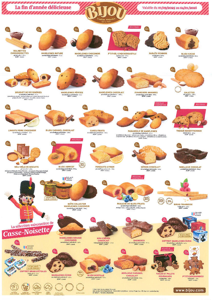 Vous pourrez récupérer vos commandes de madeleines, en Mairie, le mardi 30 décembre 2025 de 14h30 à 17h30 ou le samedi 03 janvier 2026 de 9h à 12h30 ou les semaines suivantes aux horaires d'ouverture.