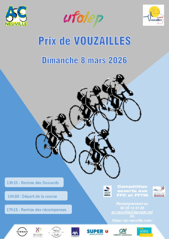 En raison d'une course cycliste, organisée le 08 mars 2026 de 14h00 à 18h00, la circulation sera perturbée (sens unique de circulation + interdiction de stationner) dans certaines rue de la commune.