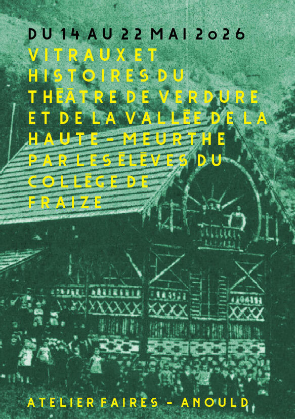 Présentation des travaux sur verre réalisés par les élèves du collège de Fraize lors d'un projet EAC, autour de l'histoire de la vallée de la Haute-Meurthe et du Théâtre de verdure de Plainfaing.