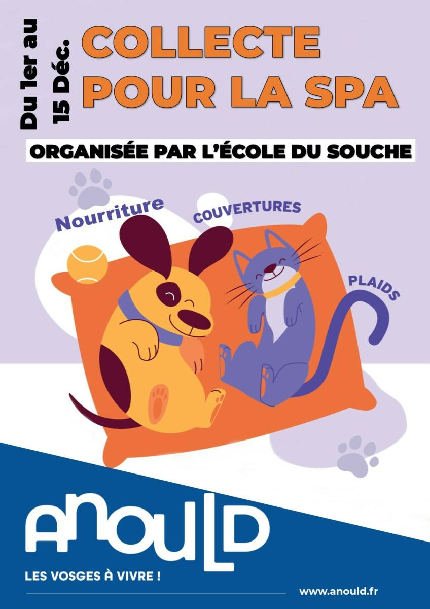 Une collecte au profit de la SPA (couvertures, plaids et nourriture) a lieu à l'école du Souche du 1er au 15 décembre