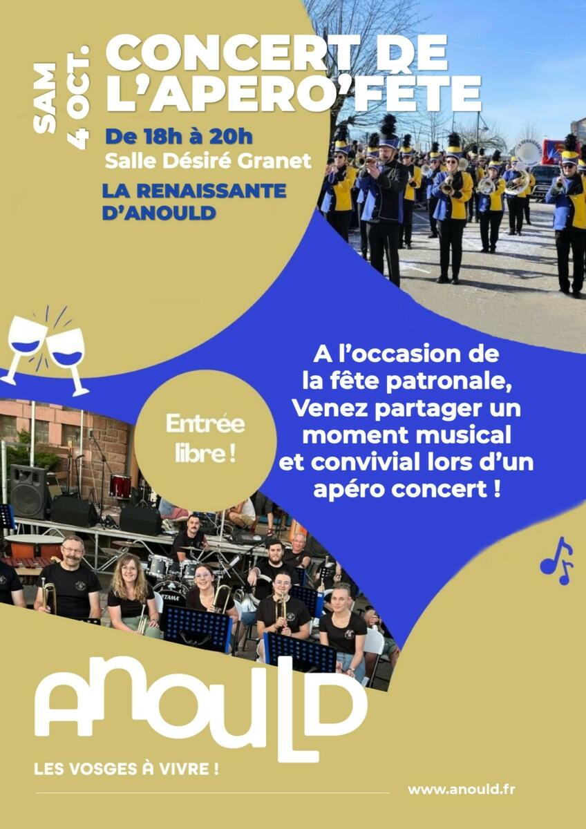 Sam 4 octobre à 18h : Concert de l'apéro'fête 15/09/2025 Salle Désiré Granet Entrée gratuite De 18h à 20h