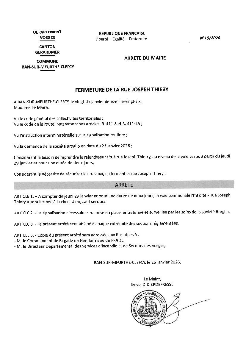 Toute l'actualité de Mairie de Ban-sur-Meurthe-Clefcy