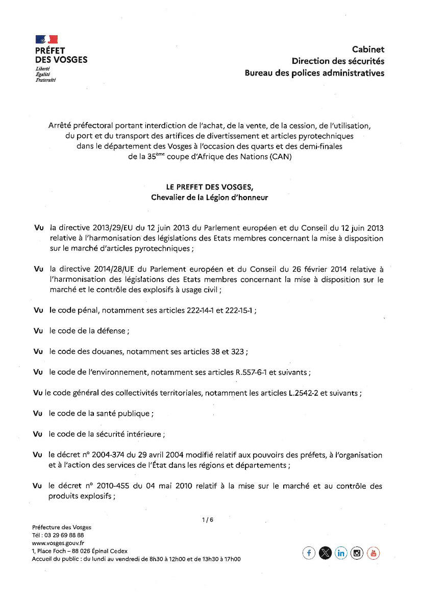 Interdiction artifices de divertissement