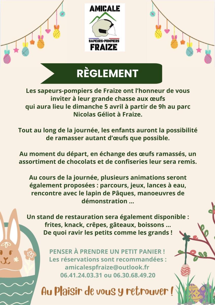 L’Amicale des sapeurs-pompiers de FRAIZE vous prépare sa deuxième chasse aux œufs ! 🍫🥚
