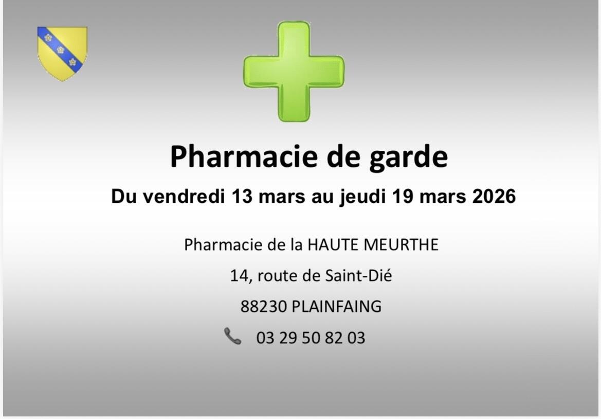 Pharmacie de garde du vendredi 13 mars au jeudi 19 mars 2026.