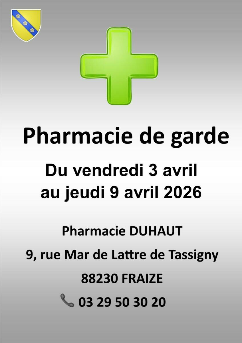 Votre mairie / Actualités / PHARMACIE DE GARDE 💊