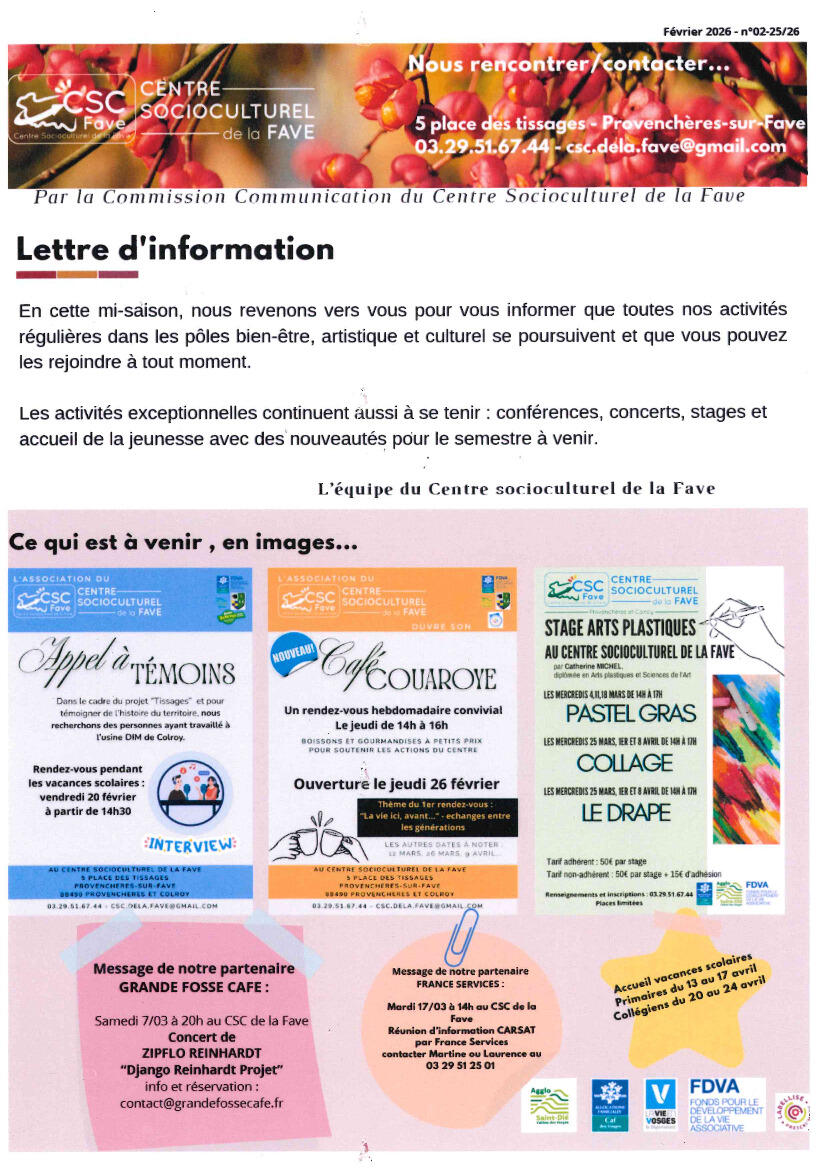 PROCHAINS ÉVÉNEMENTS DE L'ASSOCIATION DU CSC