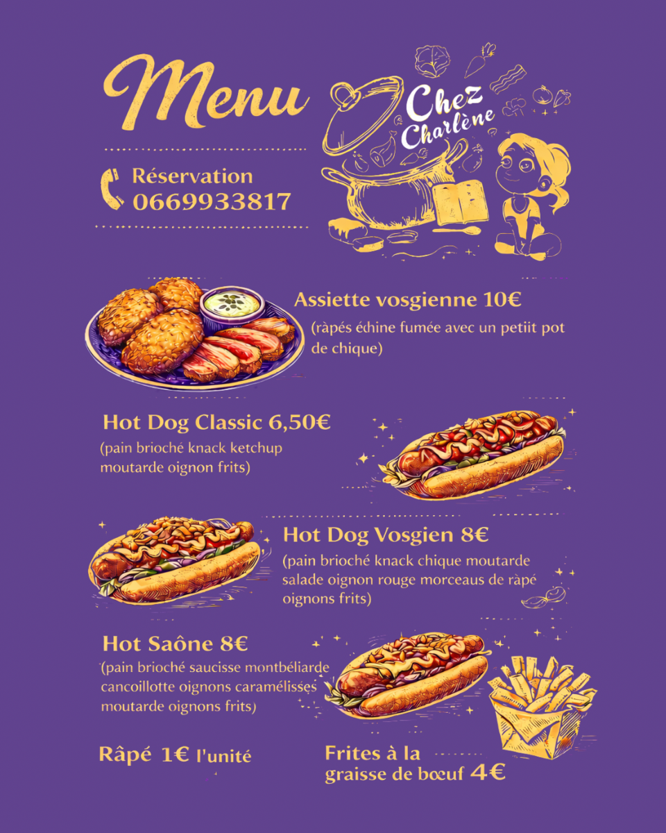 Food Truck "Chez Charlène" 14/04/2026 Le food truck "Chez Charlène" sera à Saint Jean du Marché vendredi 17 avril à partir de 19h00 Il est fortement recommandé de réserver Cliquez sur l'image pour consulter la carte