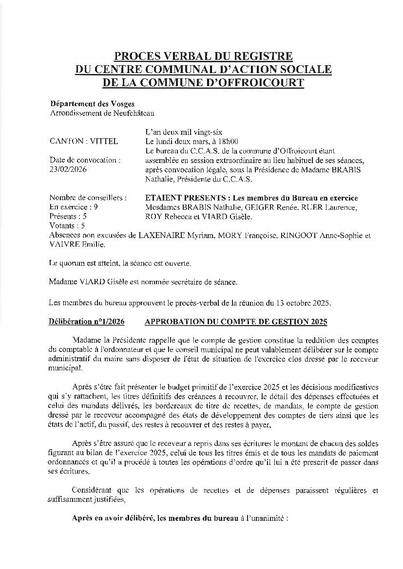 Compte rendu du CCAS du 02 mars 2026