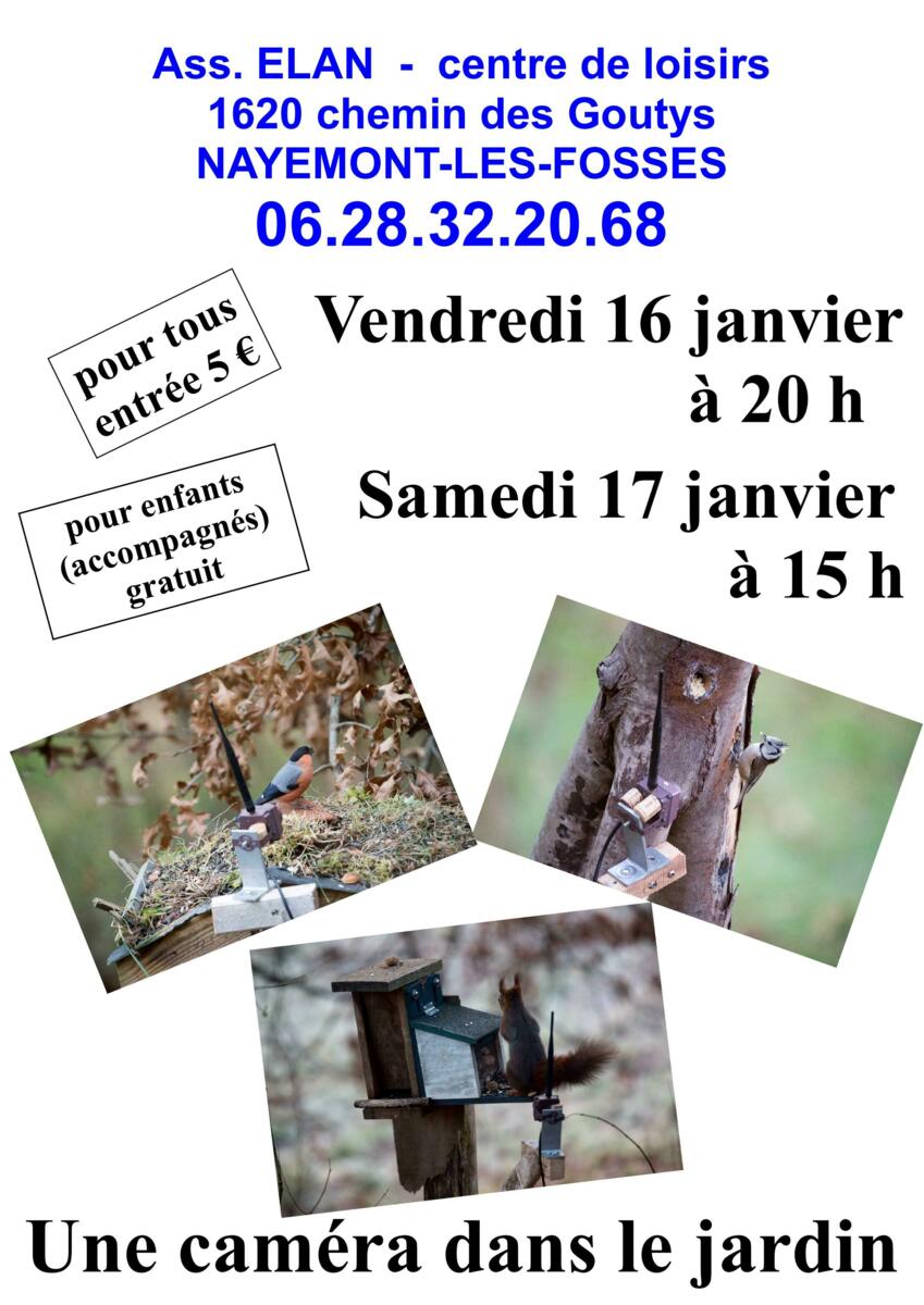 Veuillez prendre connaissance de l'événement organisé par l'association ELAN au centre de loisirs des Goutys - 1620, chemin des Goutys à Nayemont-les-Fosses : VENDREDI 16 JANVIER à 20 heures et SAMEDI 17 JANVIER à 15 heures.