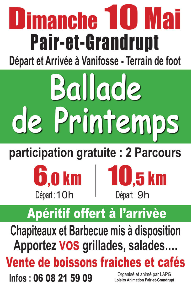 L'association Loisirs Animation Pair-et-Grandrupt (LAPG) organise sa traditionnelle ballade de printemps : DIMANCHE 10 MAI 2026.