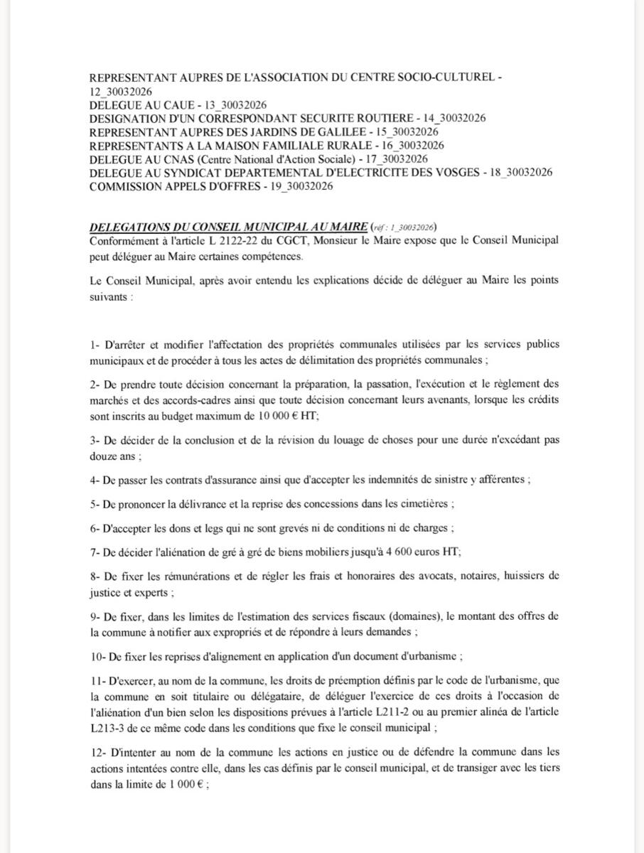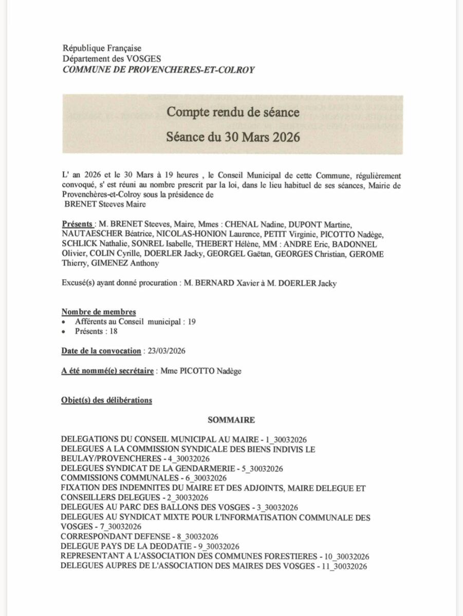 Voici le compte rendu du conseil municipal du 30 mars 2026.