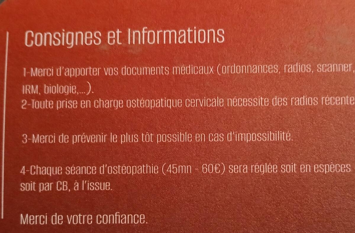 CABINET D' OSTÉOPATHIE A RAINVILLE 07/01/2026 Monsieur Jean-Daniel DESSE 175 Rue de la Basse Courte Tille