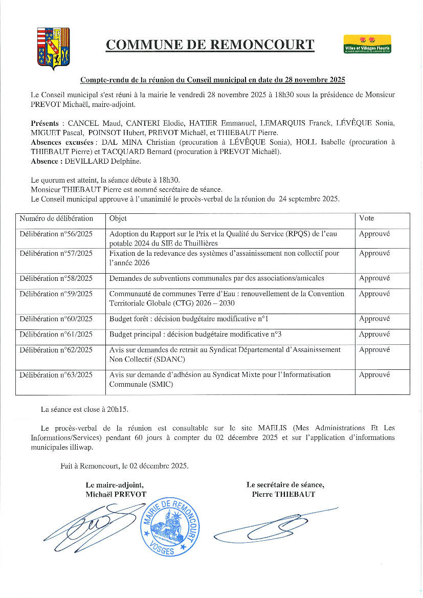 Compte-rendu du Conseil municipal du 28 novembre 2025