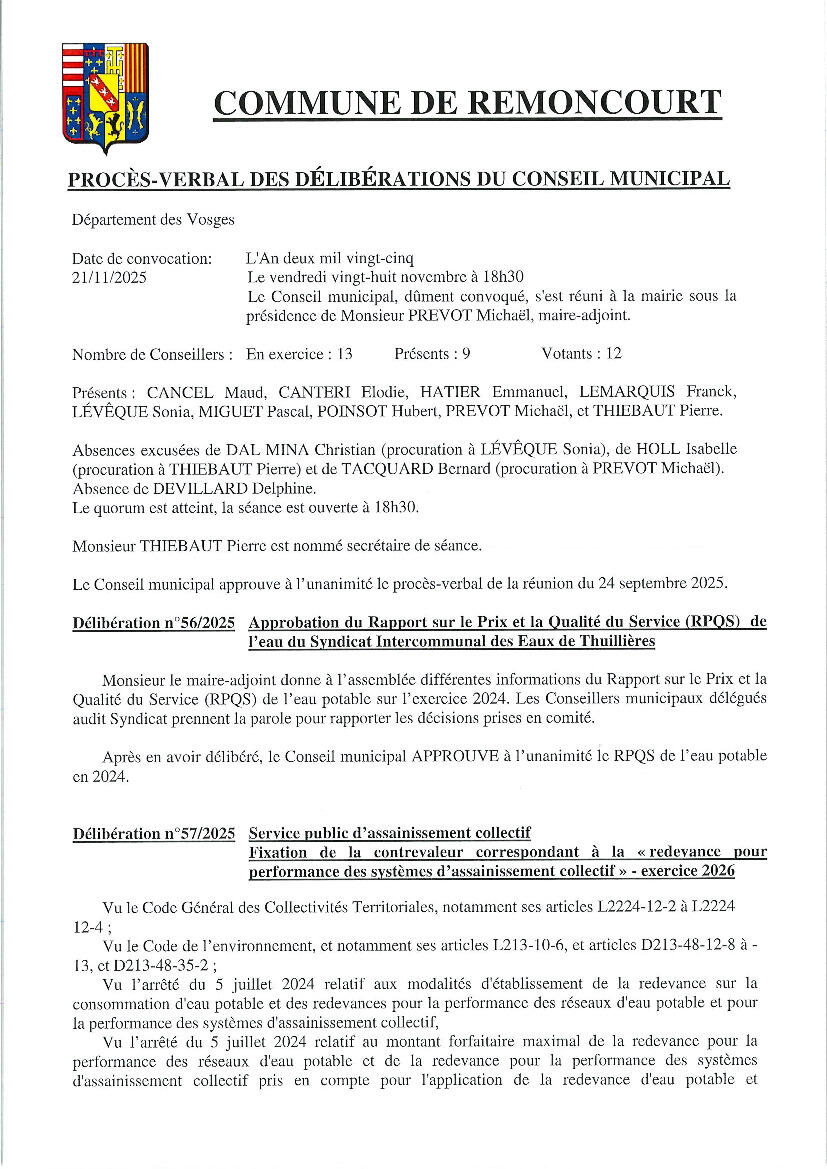 Vous trouverez en pièces jointes le compte-rendu et le procès-verbal de la réunion du Conseil municipal en date du 28 novembre 2025.