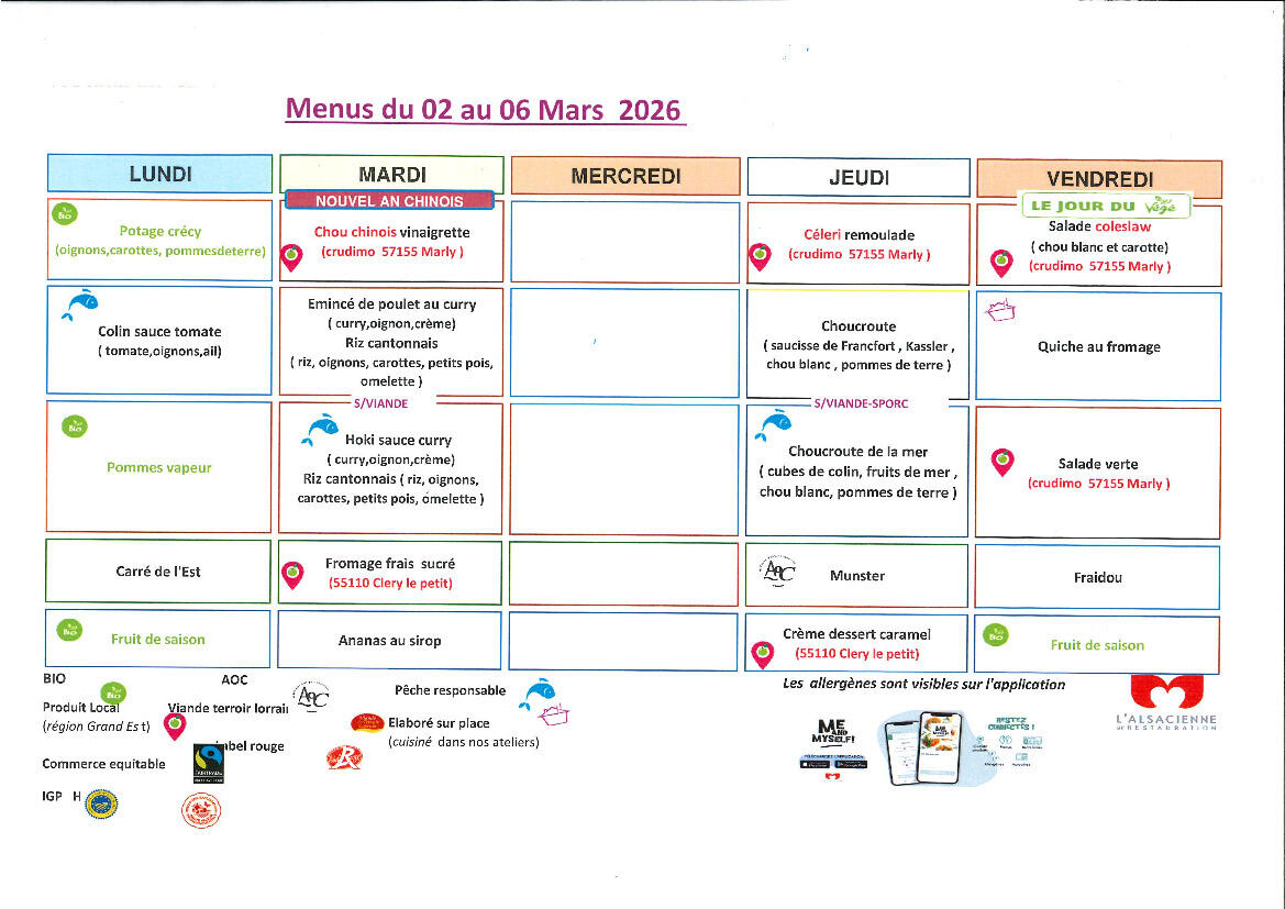 Vous trouverez en pièces jointes les meus de la cantine scolaire au mois de mars 2026.