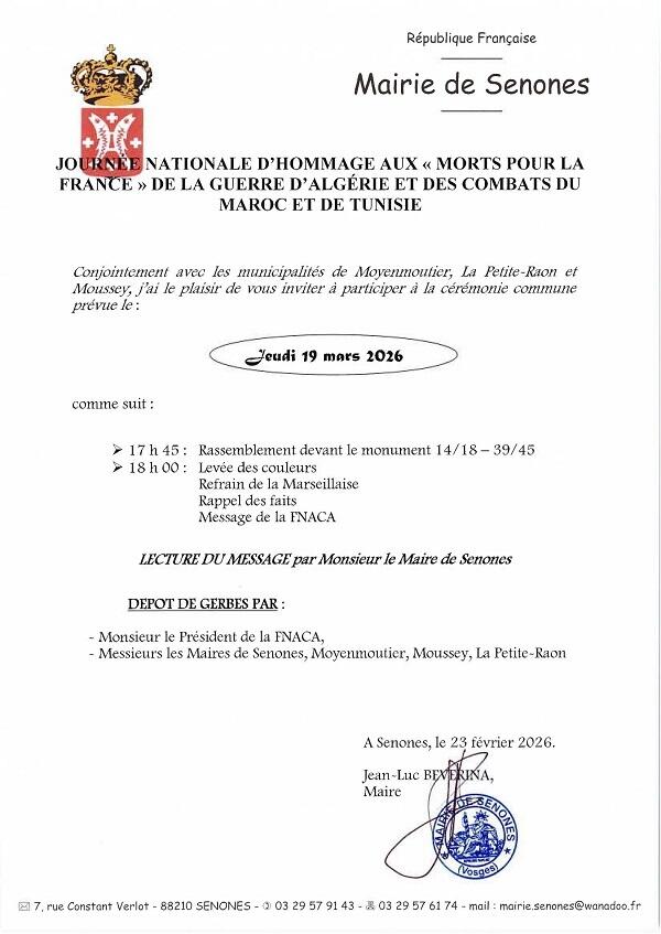 JOURNÉE NATIONALE D’HOMMAGE AUX « MORTS POUR LA FRANCE » DE LA GUERRE D’ALGERIE ET DES COMBATS DU MAROC ET DE TUNISIE.