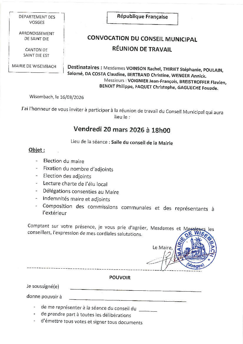Conseil municipal 20 mars à 18 h 00