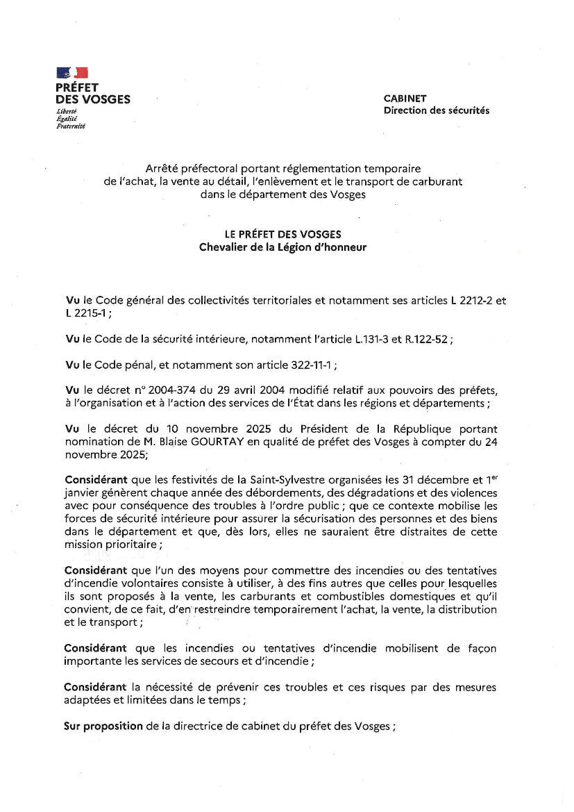 Arrêté préfectoral : transport des carburants