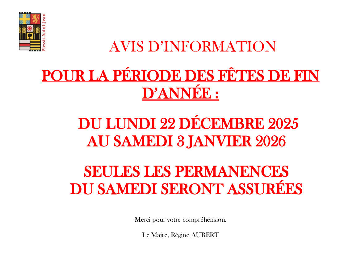 Fermeture secrétariat fêtes fin d'année