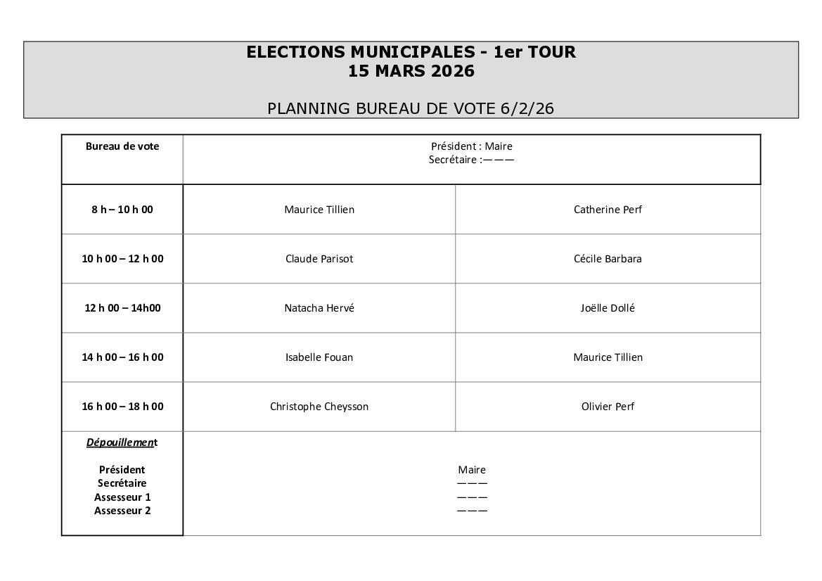 Voilà la grille de permanence du bureau de vote mise à jour.