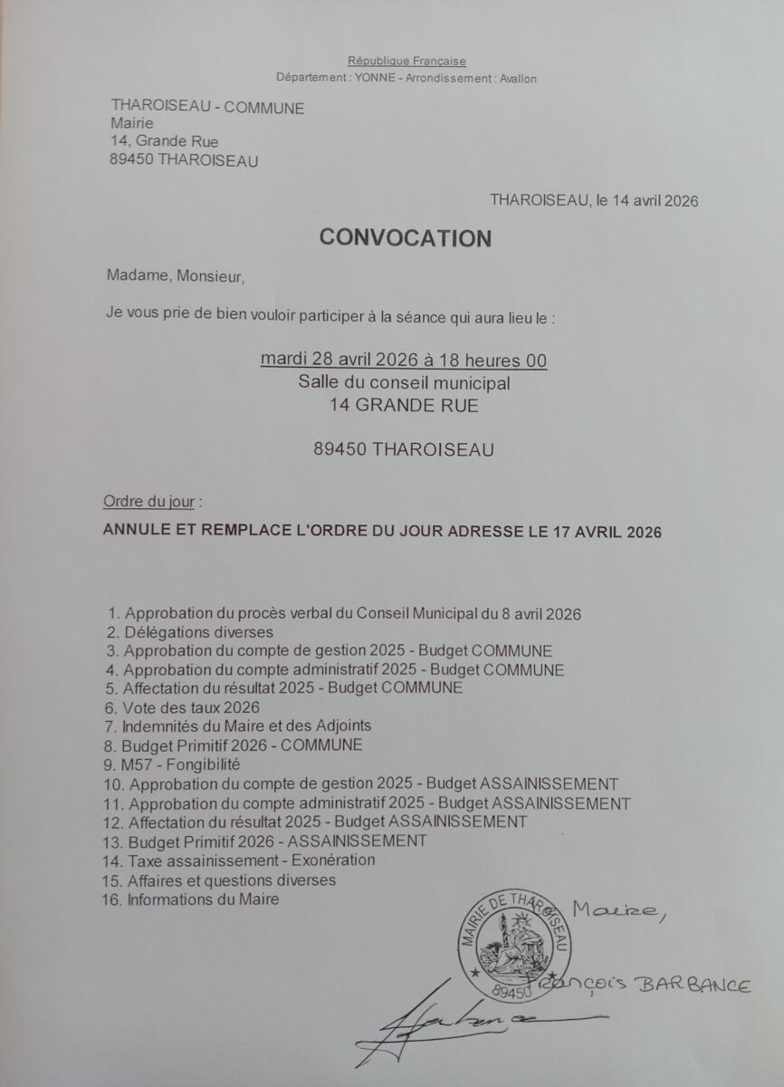 Toute l'actualité de Mairie de Tharoiseau