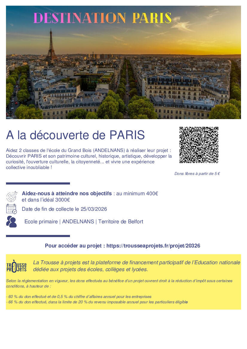 Voyage scolaire à Paris / Financement participatif