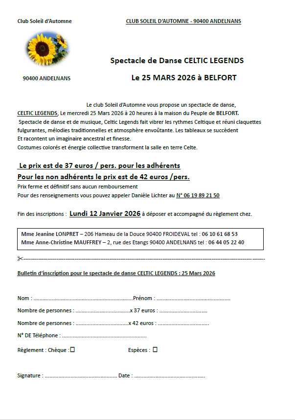 / Spectacle CELTIC LEGENDS avec le club Soleil d'Automne