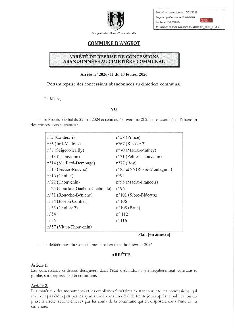 Toute l'actualité de Mairie d'Angeot