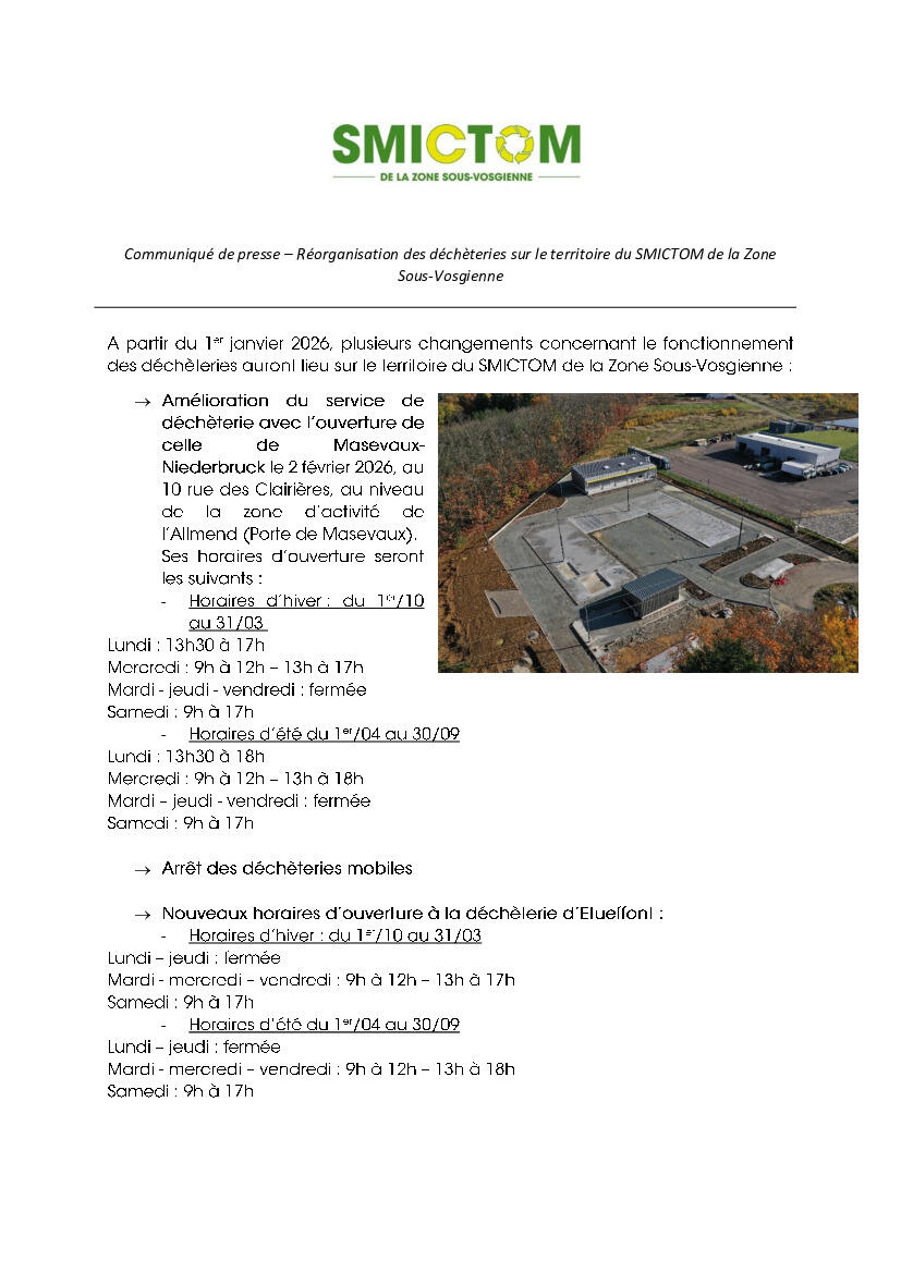 Réorganisation des déchèteries au 1er janvier 2026