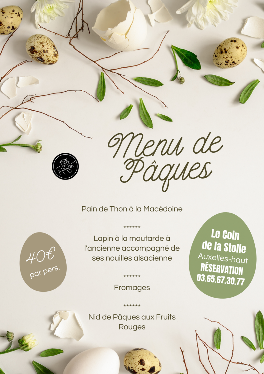 Votre mairie / Actualités / Auberge de la Stolle - Menu de Pâques