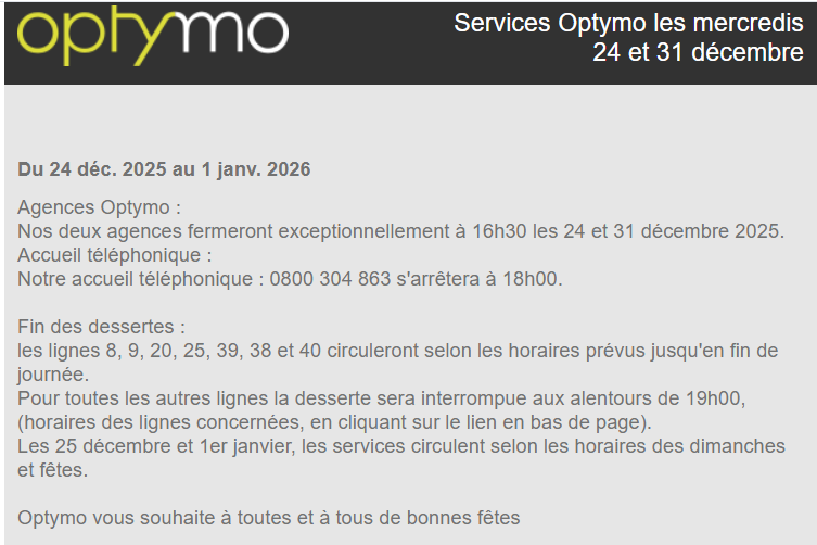 SERVICES OPTYMO 24 ET 31 DECEMBRE