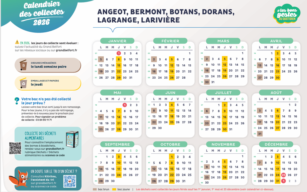 CALENDRIER 2026 / COLLECTE DES DECHETS