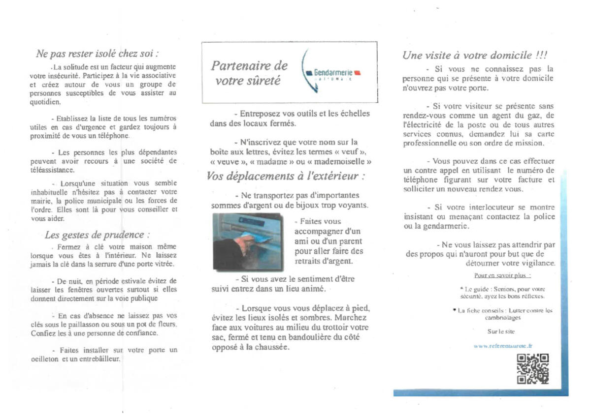 La commune, en partenariat avec la gendarmerie, organise une rĂ©union dâinformation destinĂ©e aux personnes de plus de 65 ans.