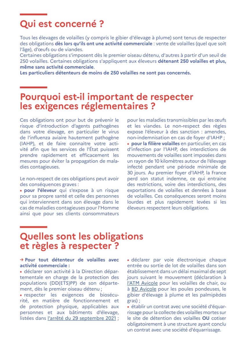 • Mise à l’abri obligatoire des volailles et oiseaux domestiques